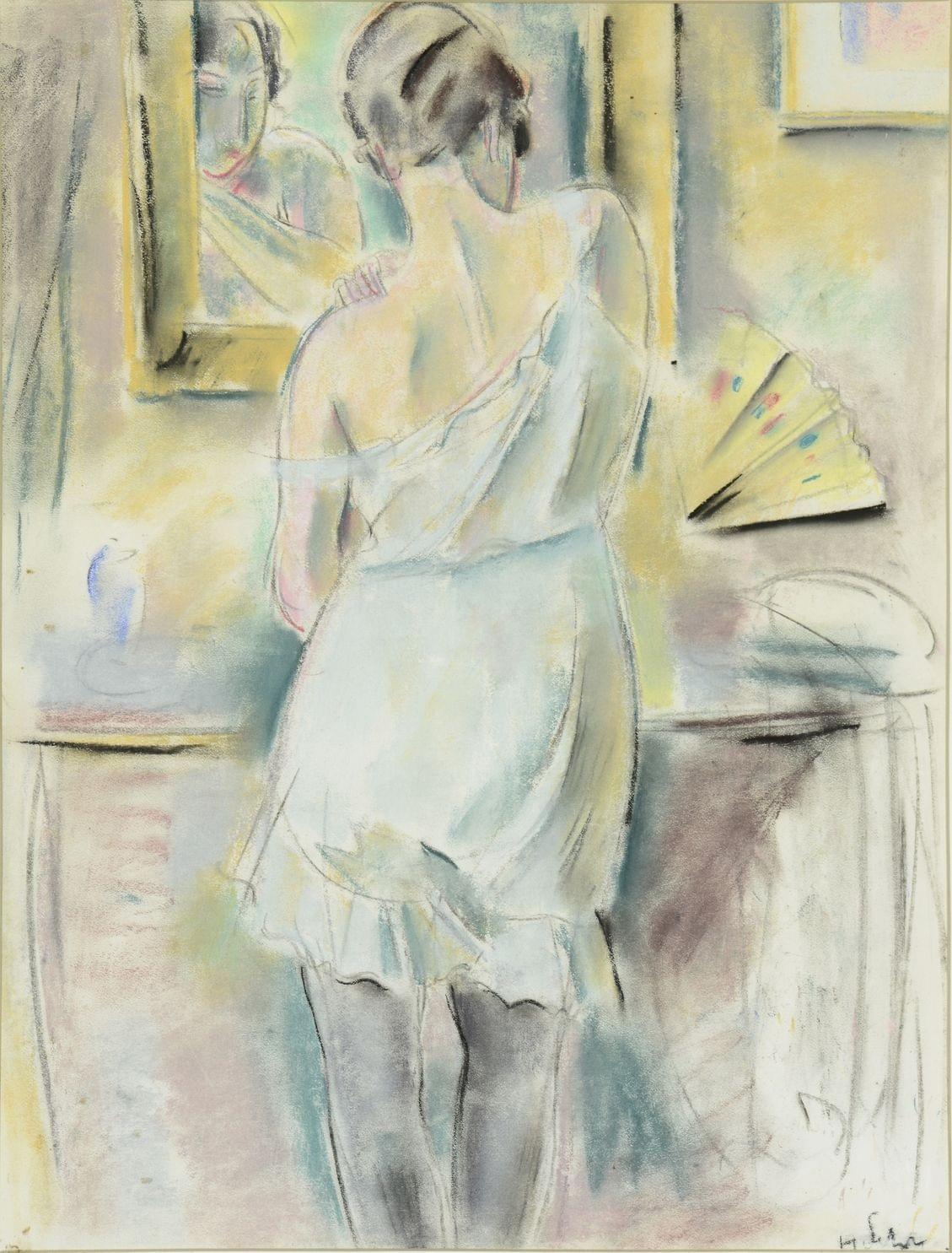 Femme à la tête penchée, pastel sur papier, signé, 42x55 cm