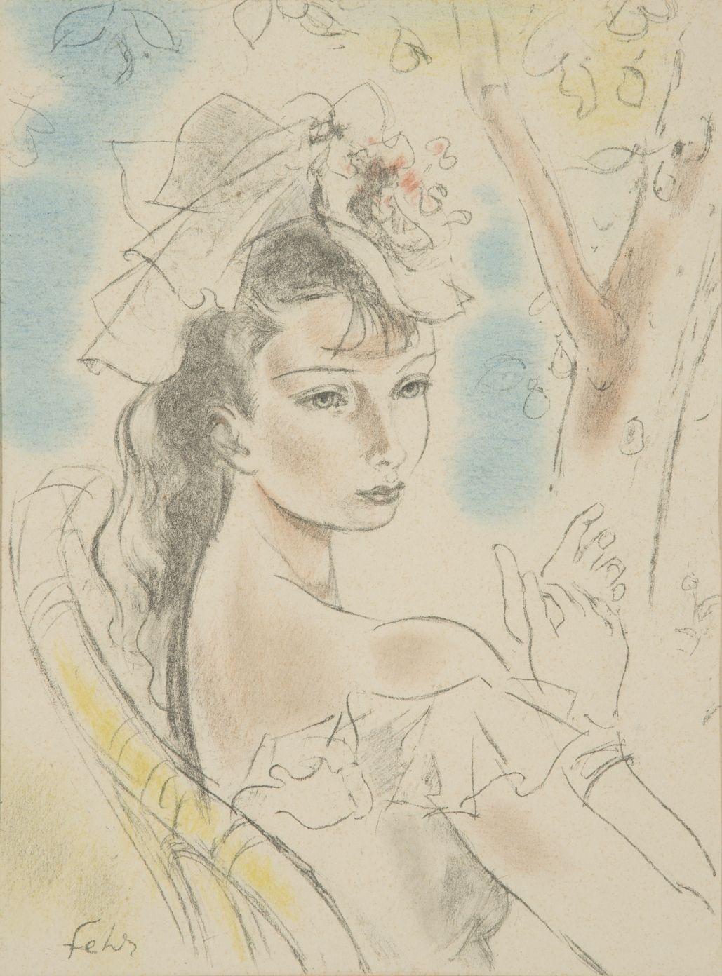 Jeune femme assise, crayon de couleur et fusain sur papier, 35x27 cm