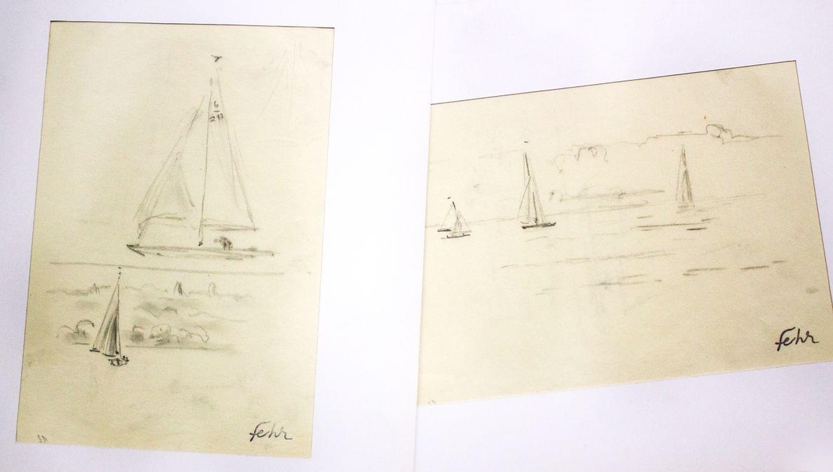 Feux de la Saint Jean en Valais, lavis sur papier signé, 28 x 21...