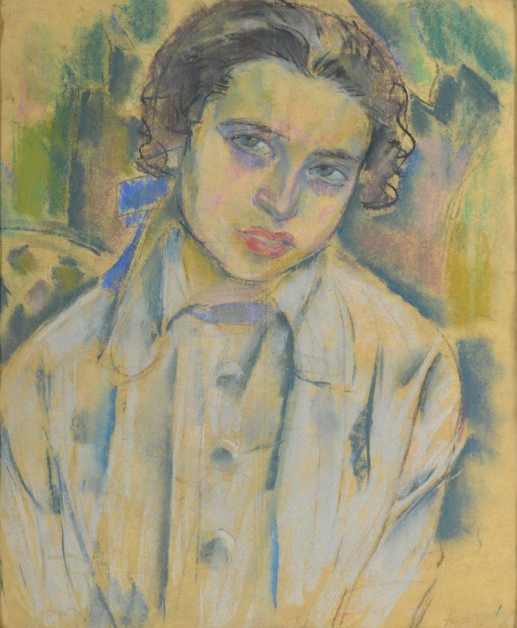 Nu assis à l'étole bleue, pastel sur papier, cachet de l'atelier...