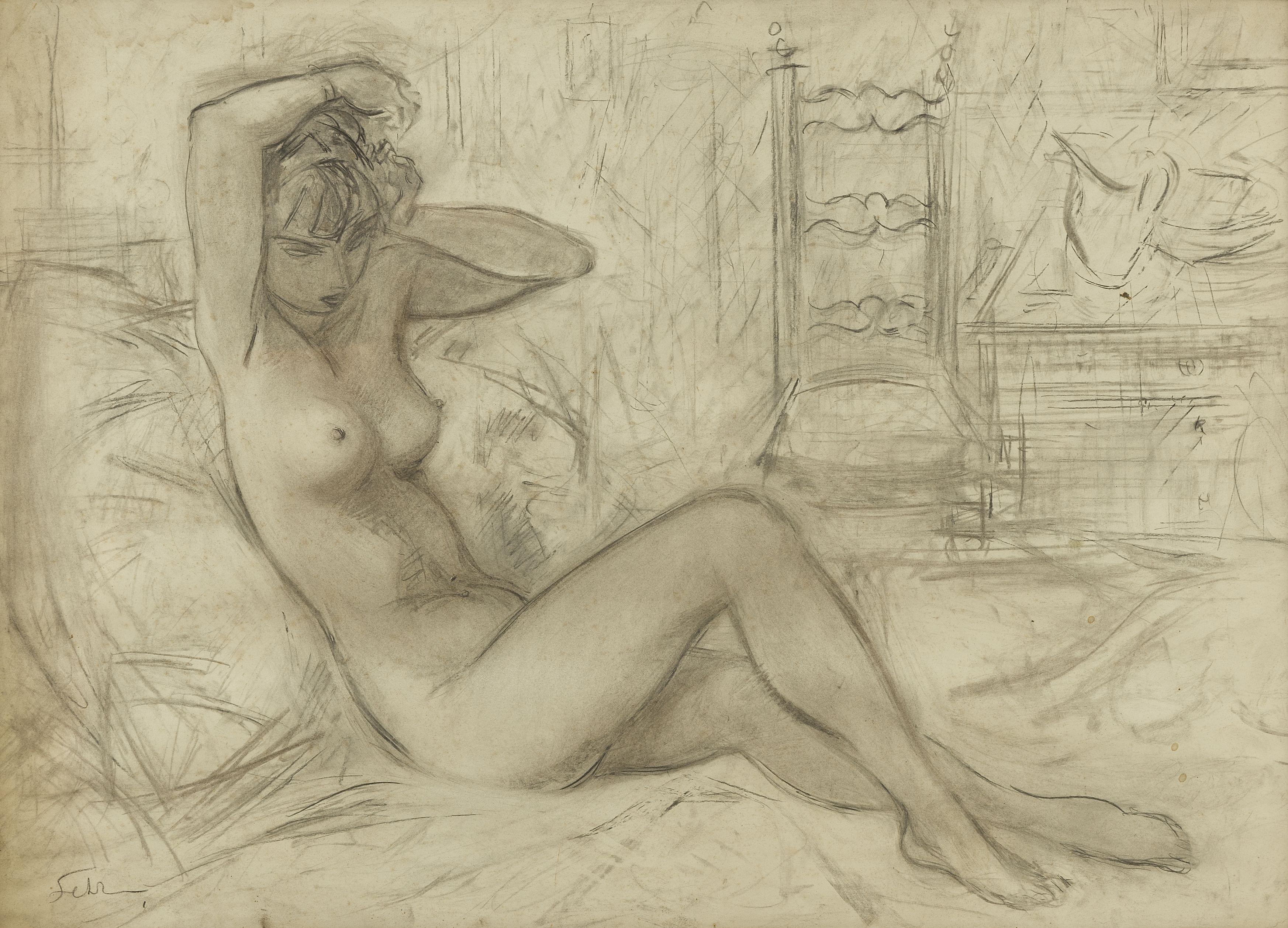 Jeune femme nue, mine de plomb sur papier, signée, 49x69 cm