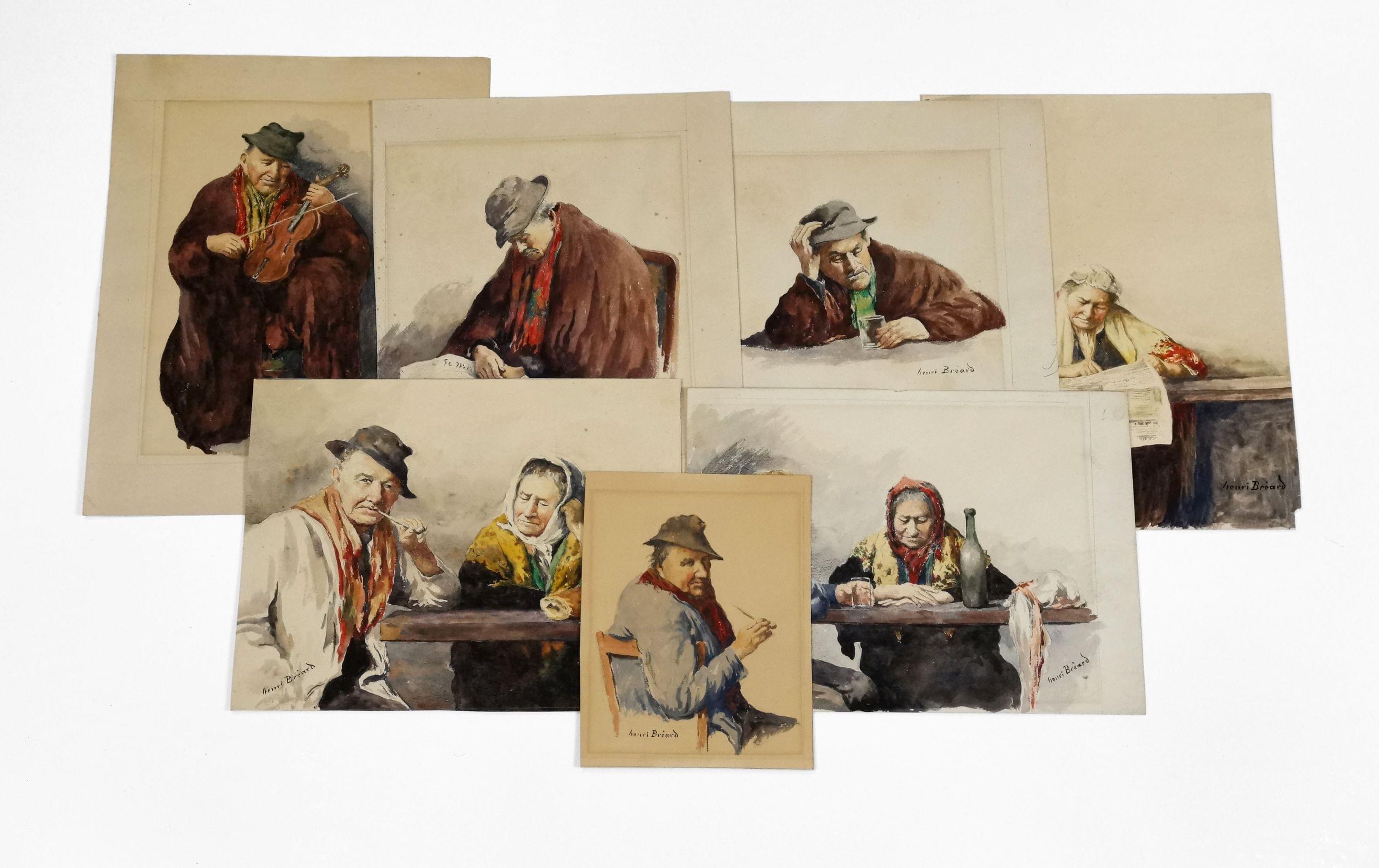 Etudes de personnages, sept aquarelles sur papier, signées, 23x18 cm à 40x31 cm