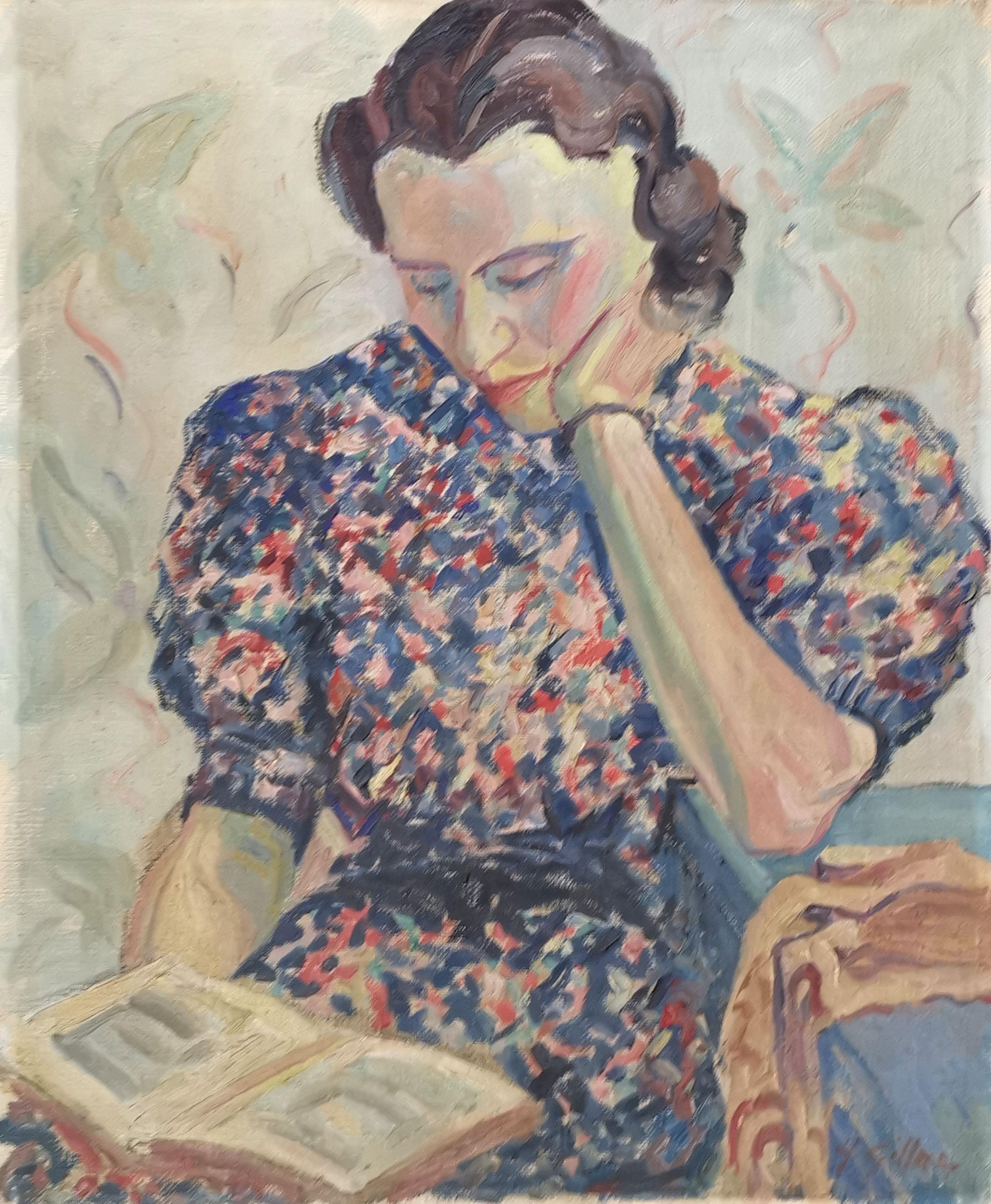 Femme lisant, huile sur toile, signée, 66x55 cm
