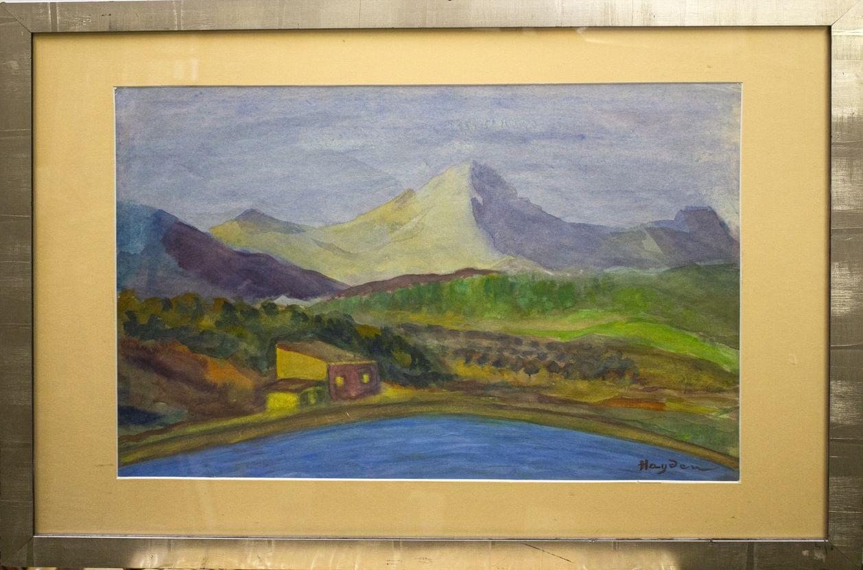 Paysage, lac et montagnes, aquarelle, signée, 38x54 cm