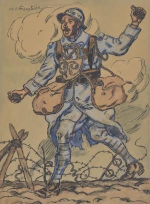 Le poilu, encre et aquarelle sur papier, signée, 33x25 cm