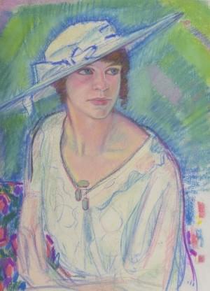 Elégante au chapeau, pastel sur papier signé, 58x42 cm