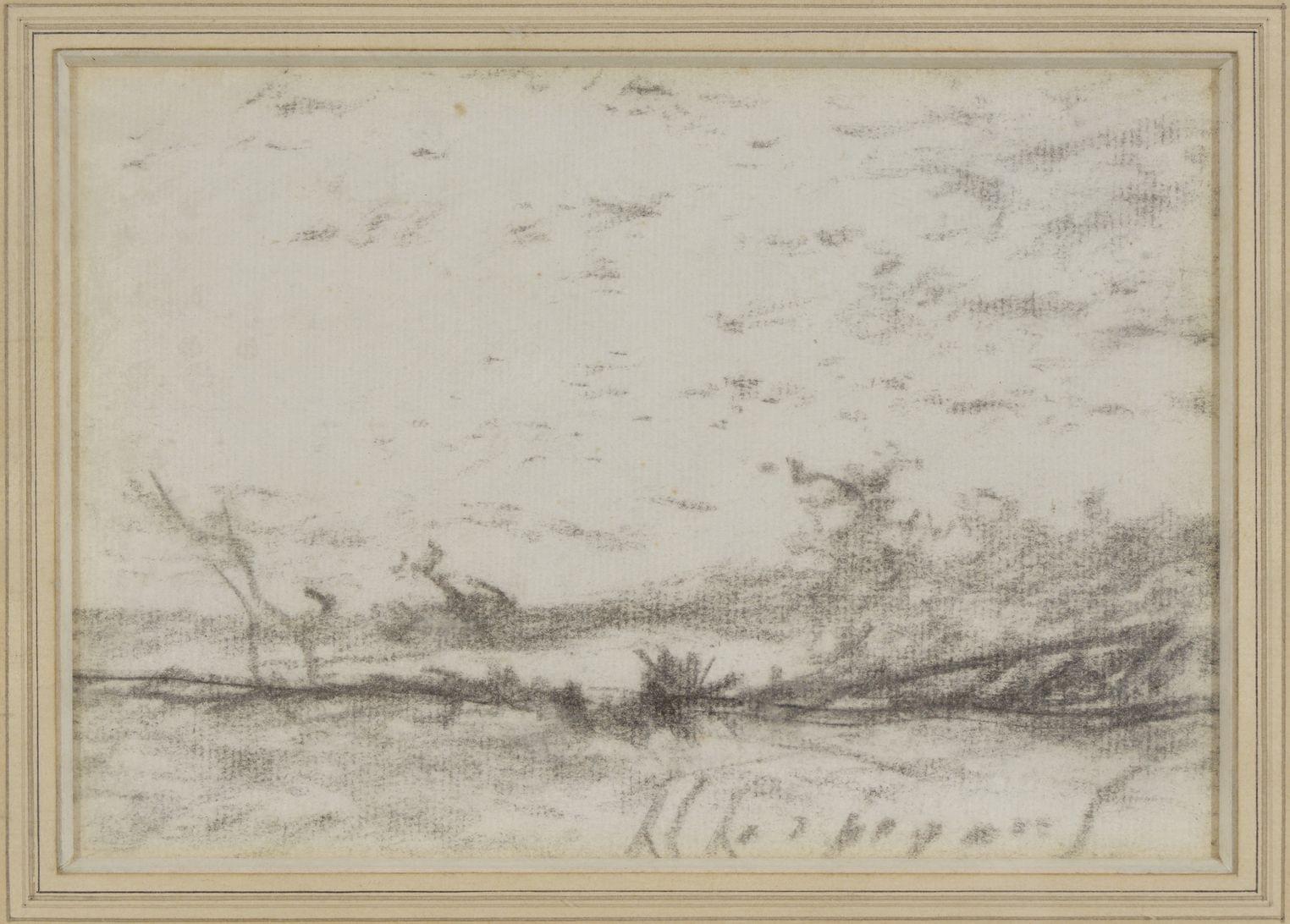 Paysage, fusain sur papier, signé, 13x18 cm
