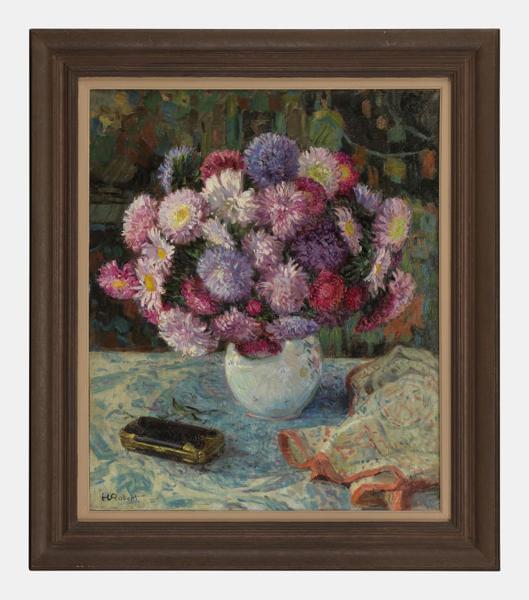 Bouquet d'asters, huile sur toile, signée, 65x54 cm