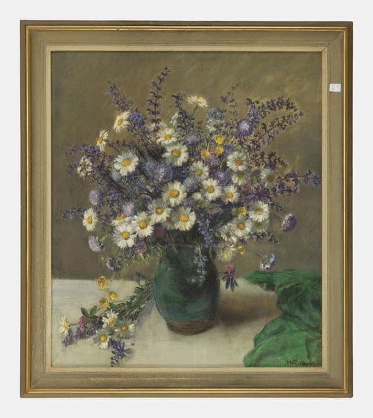 Bouquet de fleurs des champs, huile sur toile, signée, 70x60 cm