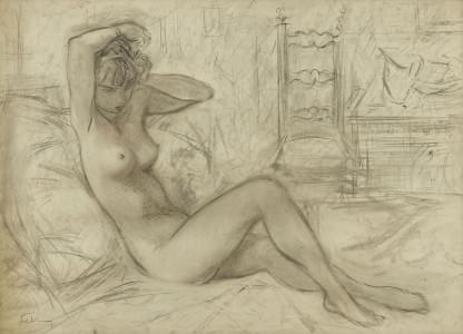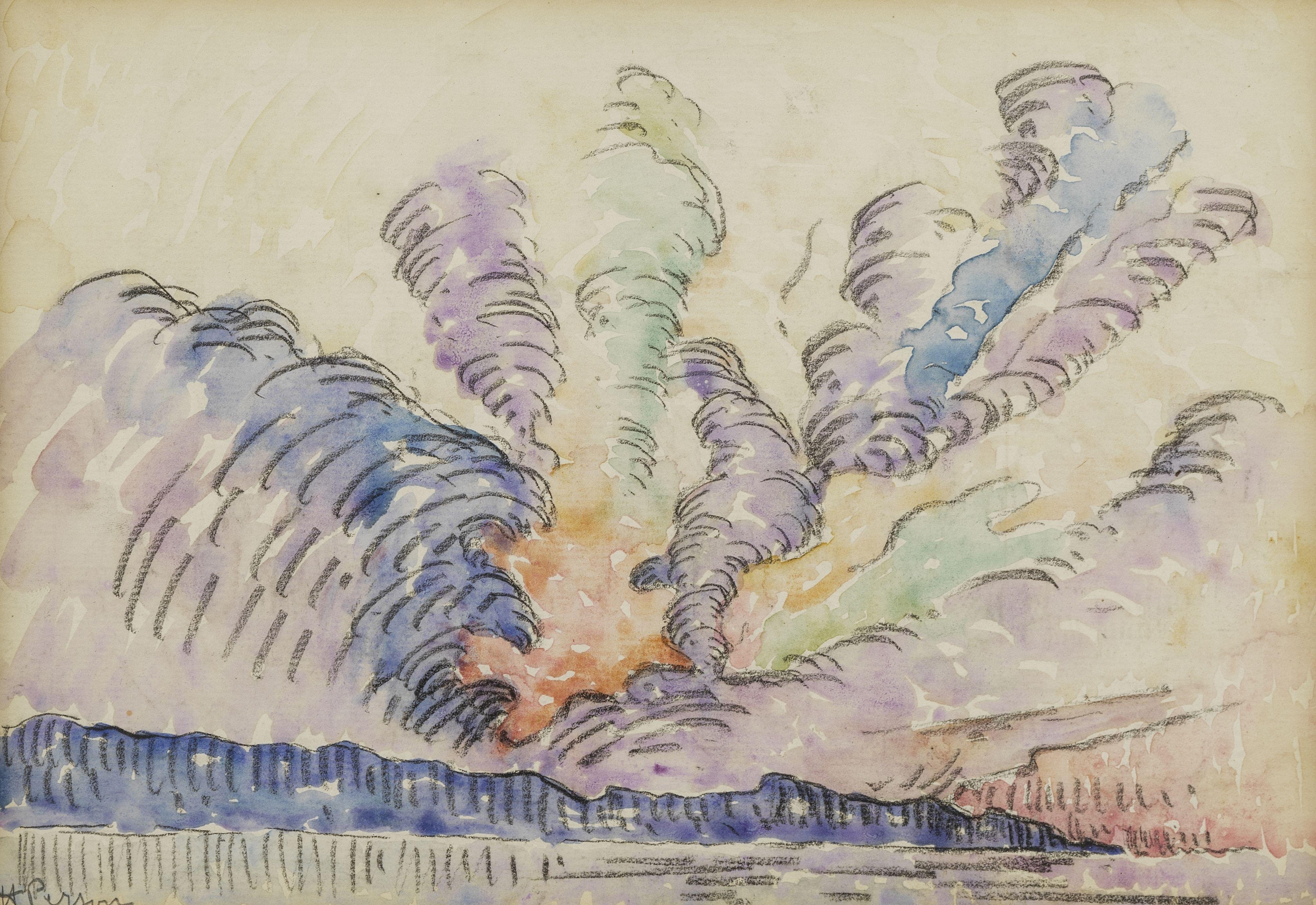 Paysage avec nuages, aquarelle sur papier, signée, cachet de la vente Henri Person 1969, au dos, 21x30