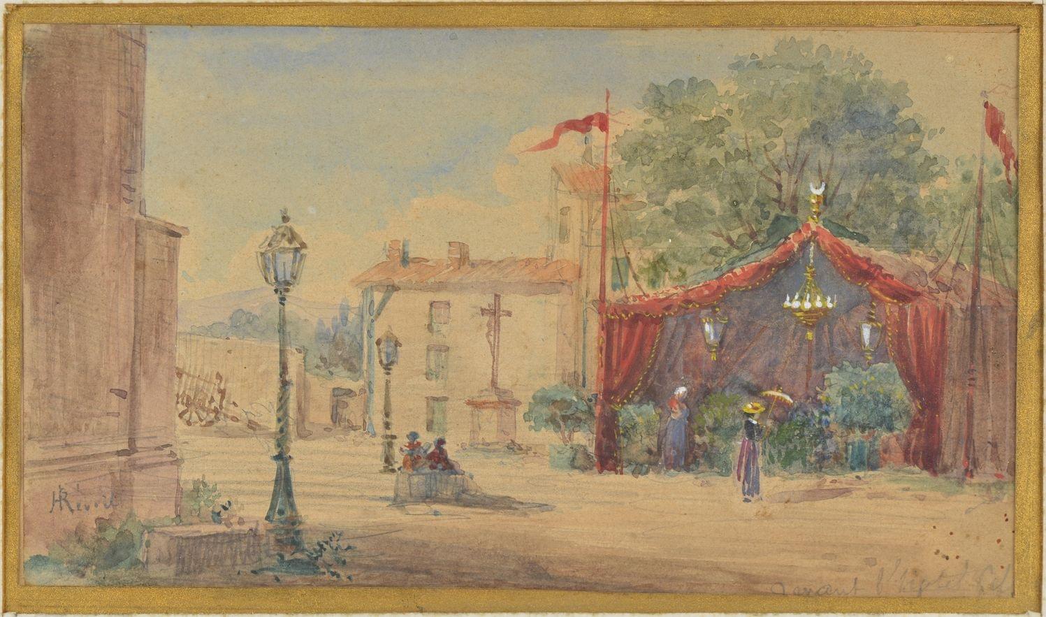 Feux de la Saint Jean en Valais, lavis sur papier signé, 28 x 21...