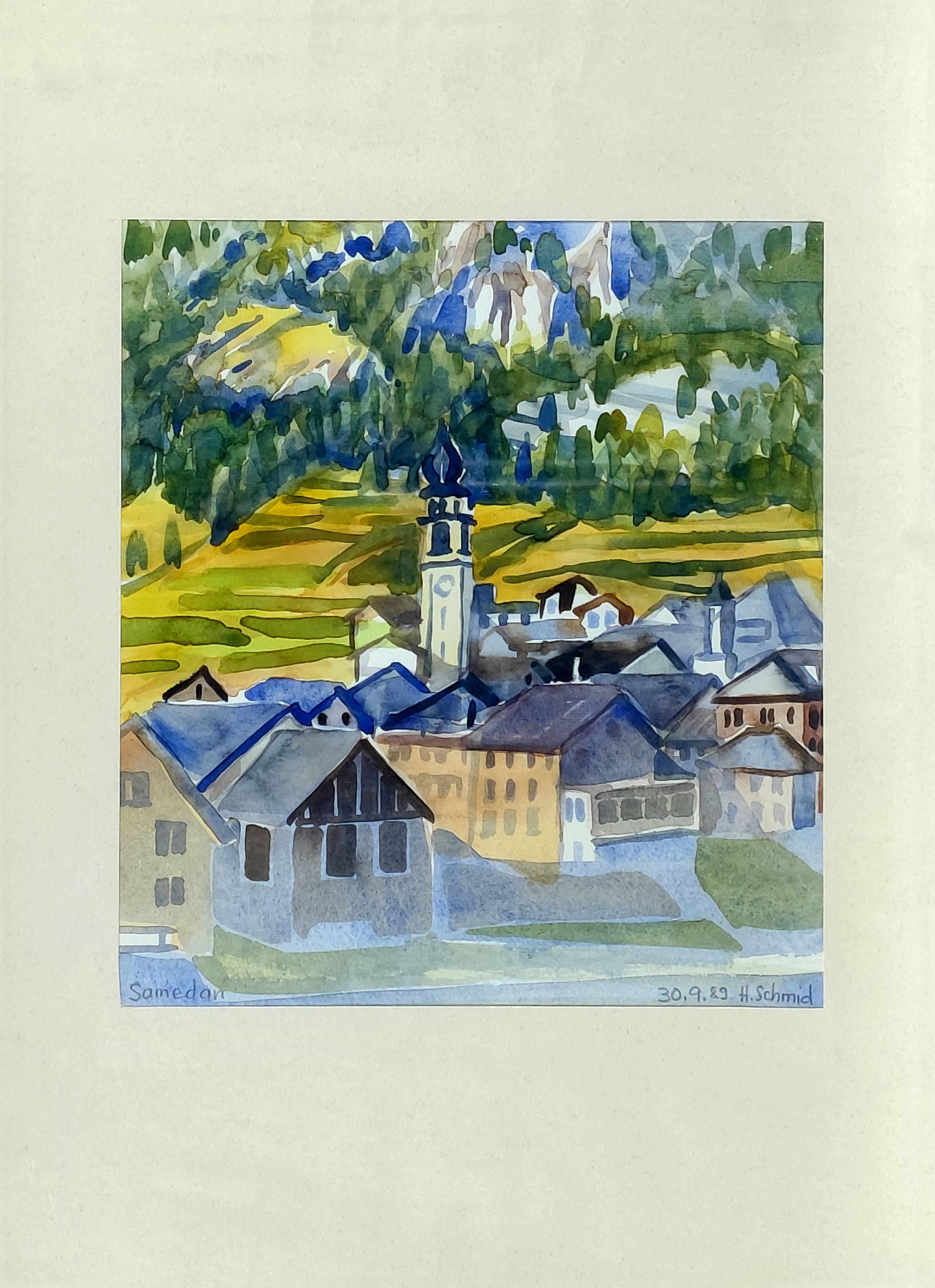 Méditation sur la dune, aquarelle sur papier, 13x15 cm