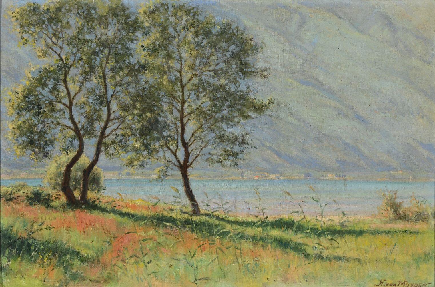 Arbres près du lac, huile sur toile, signée, 48x32 cm