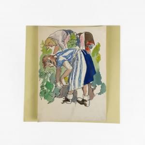Les vendangeuses, encre et aquarelle sur papier, 29x21 cm