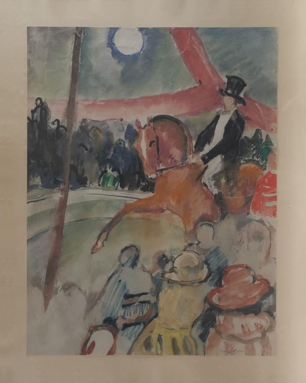 Cirque Medrano, encre et aquarelle sur papier, signé, 54x42 cm