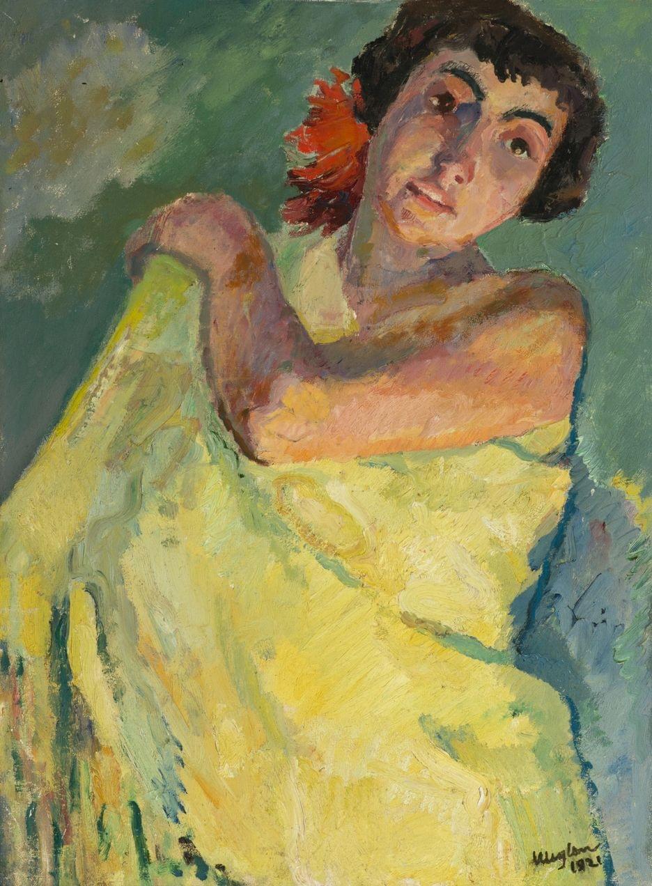Danseuse, huile sur pavatex signée et datée 1921, 71x53 cm