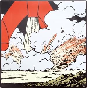 139. Hergé, Tintin, plaque émaillée "Série lune", la fusée alunissant