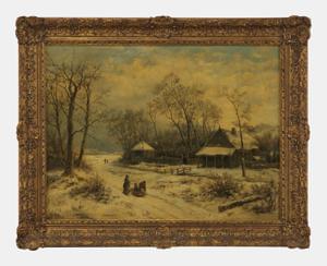 Paysage hivernal animé, huile sur toile, 60x80 cm
