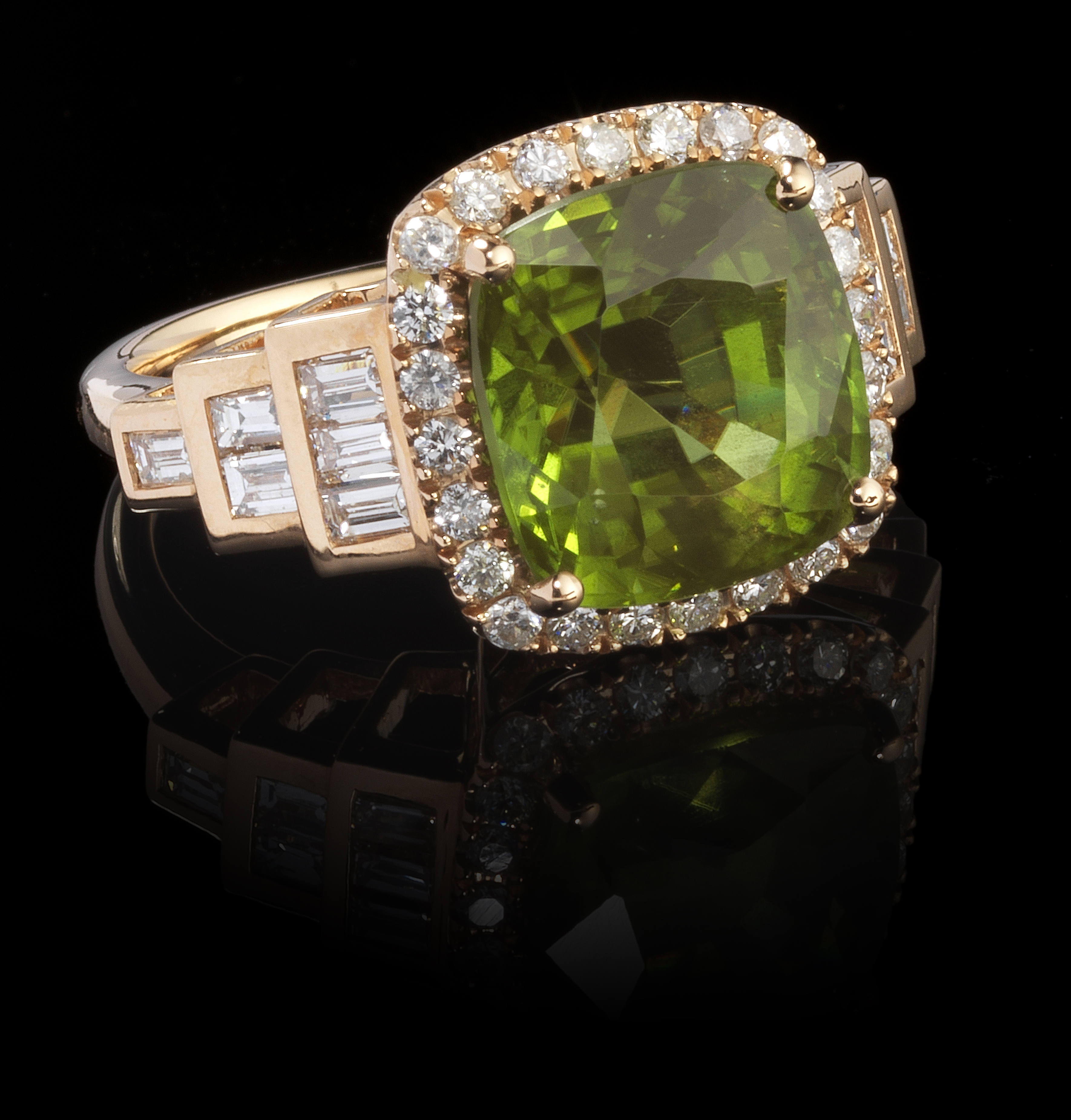 24. *Bague sertie d'un péridot birman non traité taille coussin (8,1...