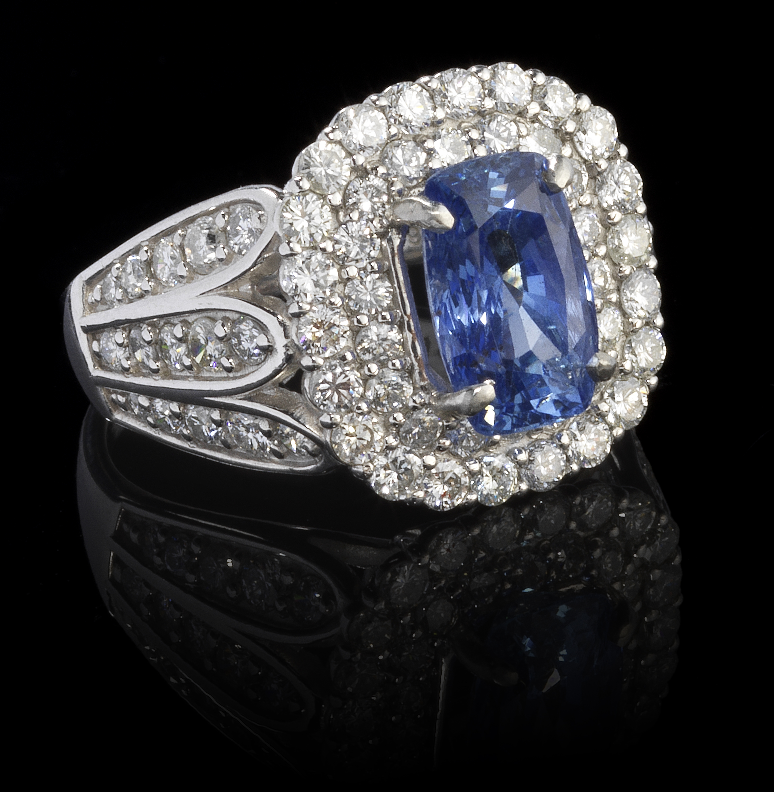 Entouré et épaulé de diamants taille brillant et baguette (total...