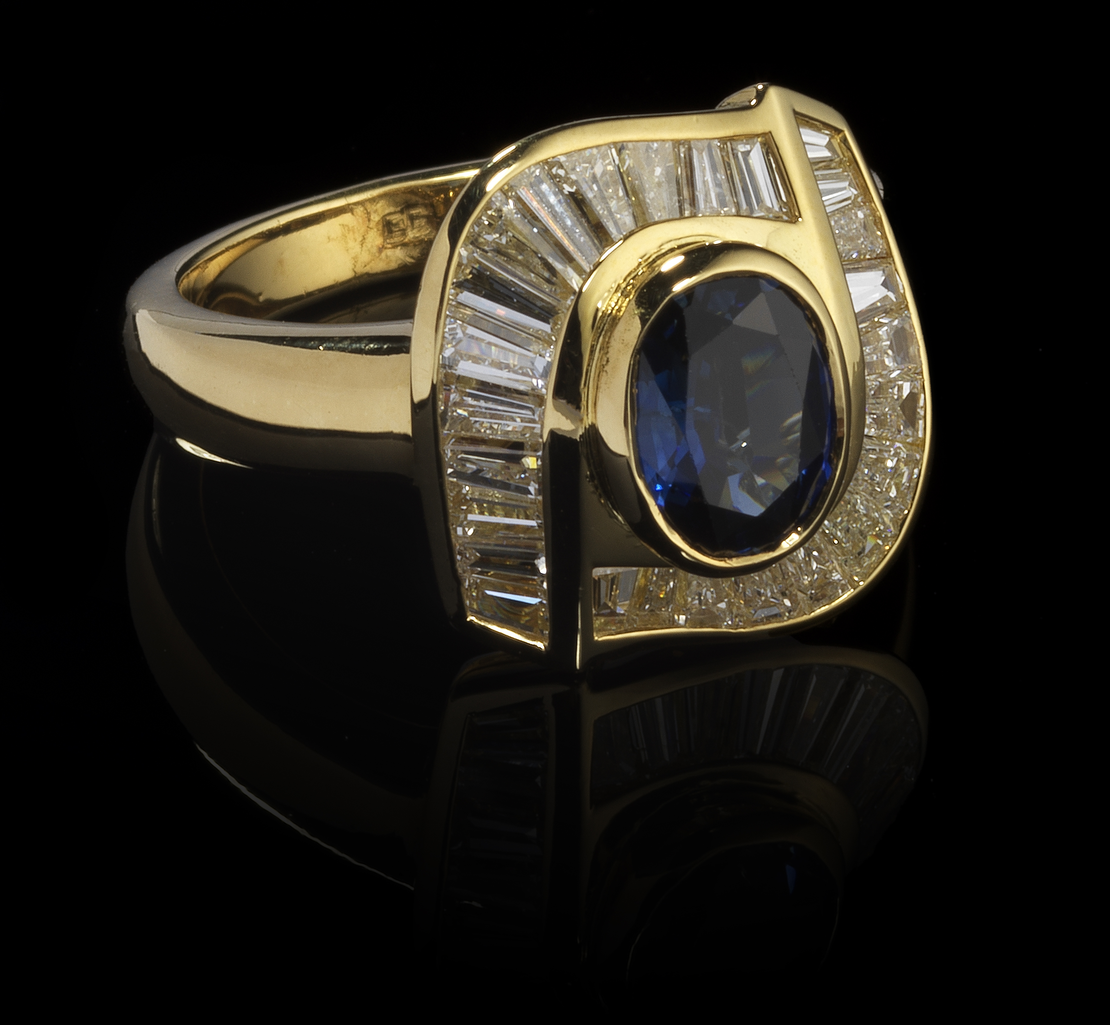 Entouré de diamants taille trapèze, or 750, doigt 54-14, 9 g