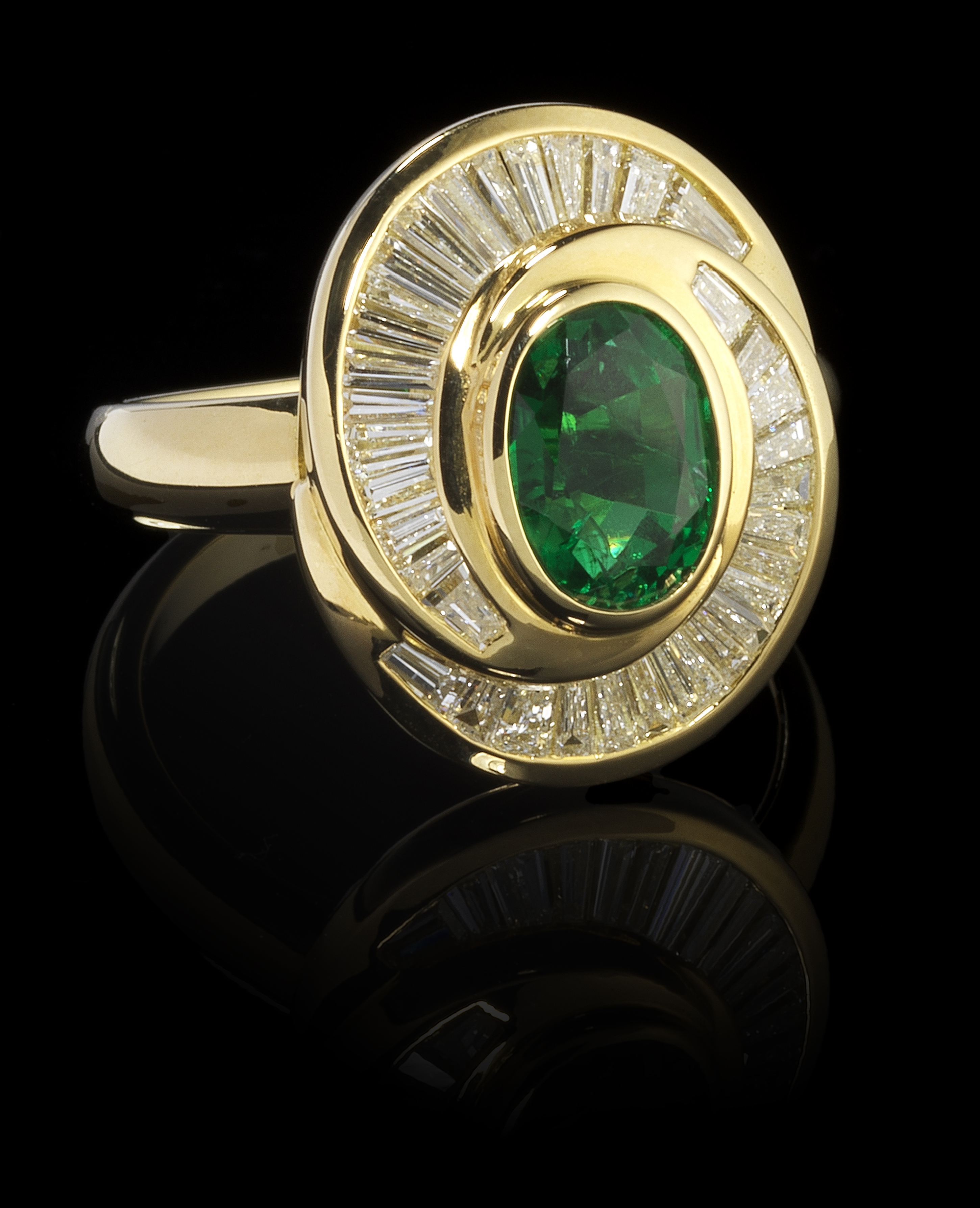26. Bague tourbillon sertie d'une émeraude taille ovale (env. 1 ct)
