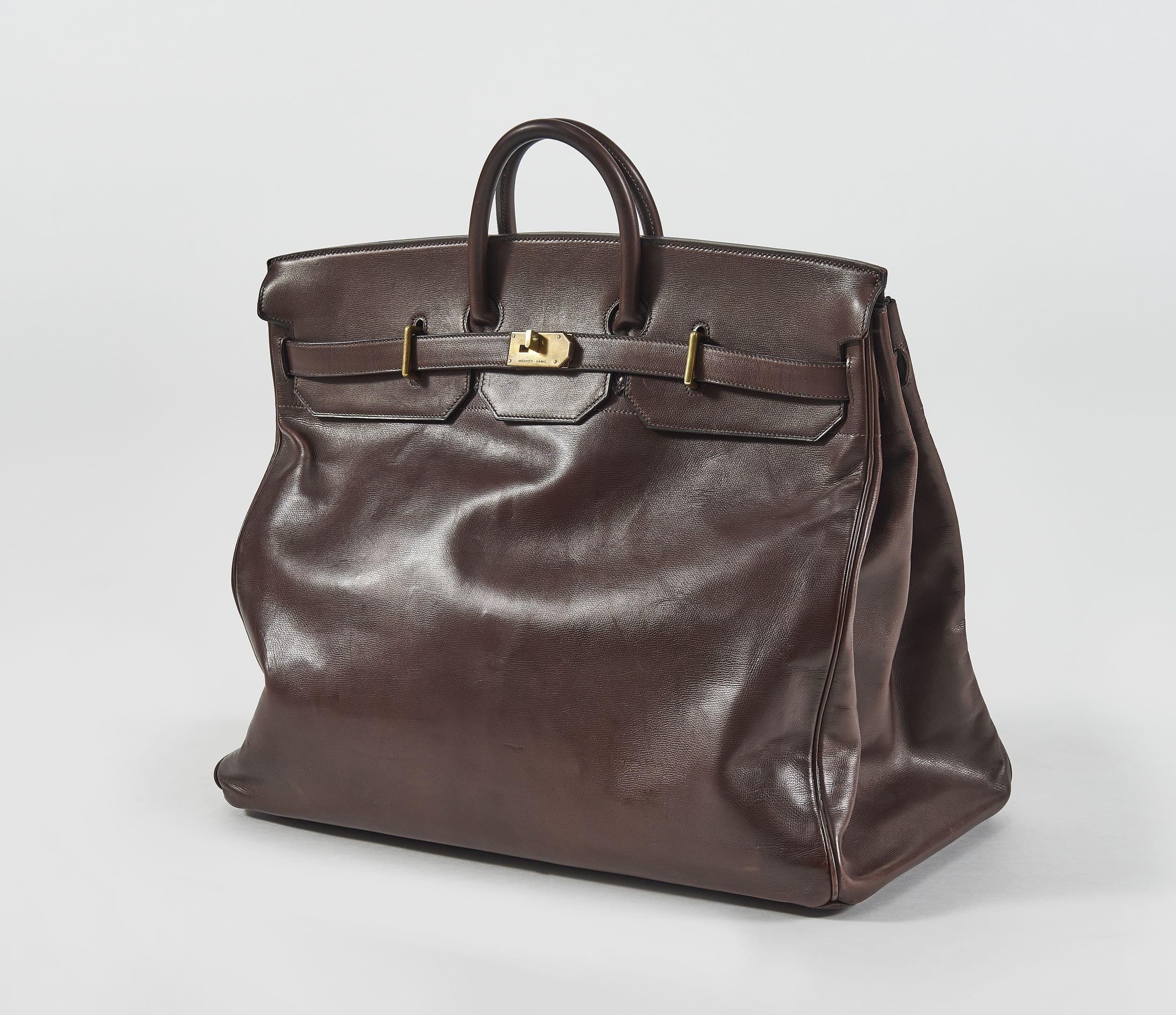 Cuir lisse bordeaux, garniture en métal doré, cadenas et ses deu...