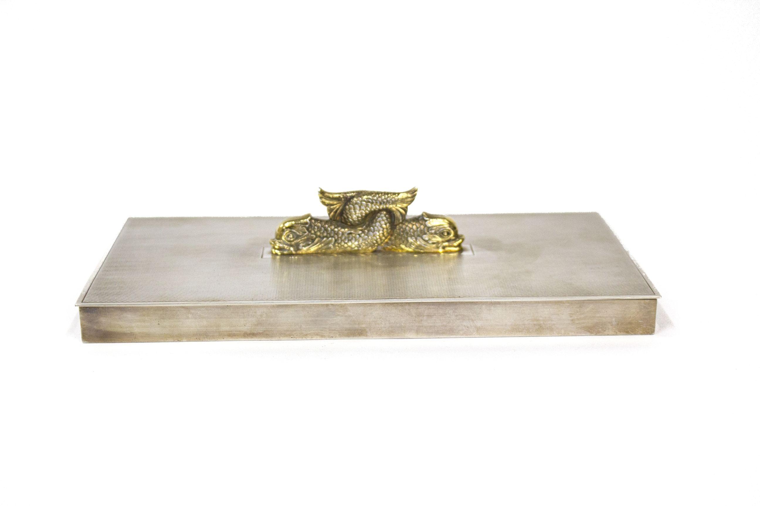 3009. Hermès, boîte à cigarettes à fretel à motifs de dauphins