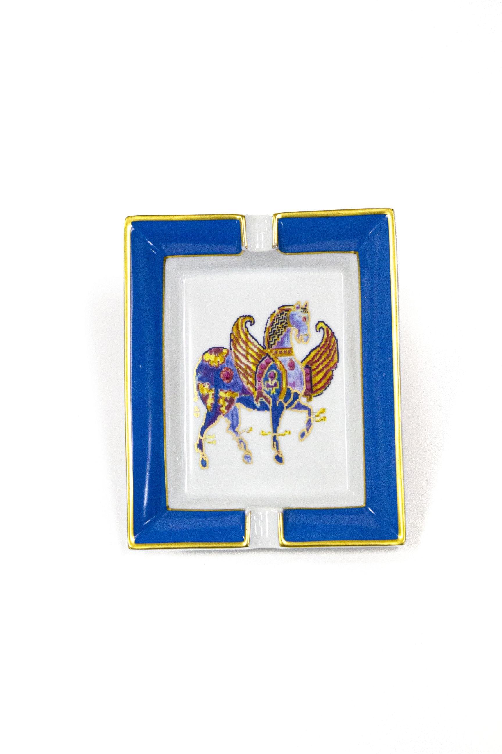 Porcelaine bleue, blanche et dorée, 19x16 cm
