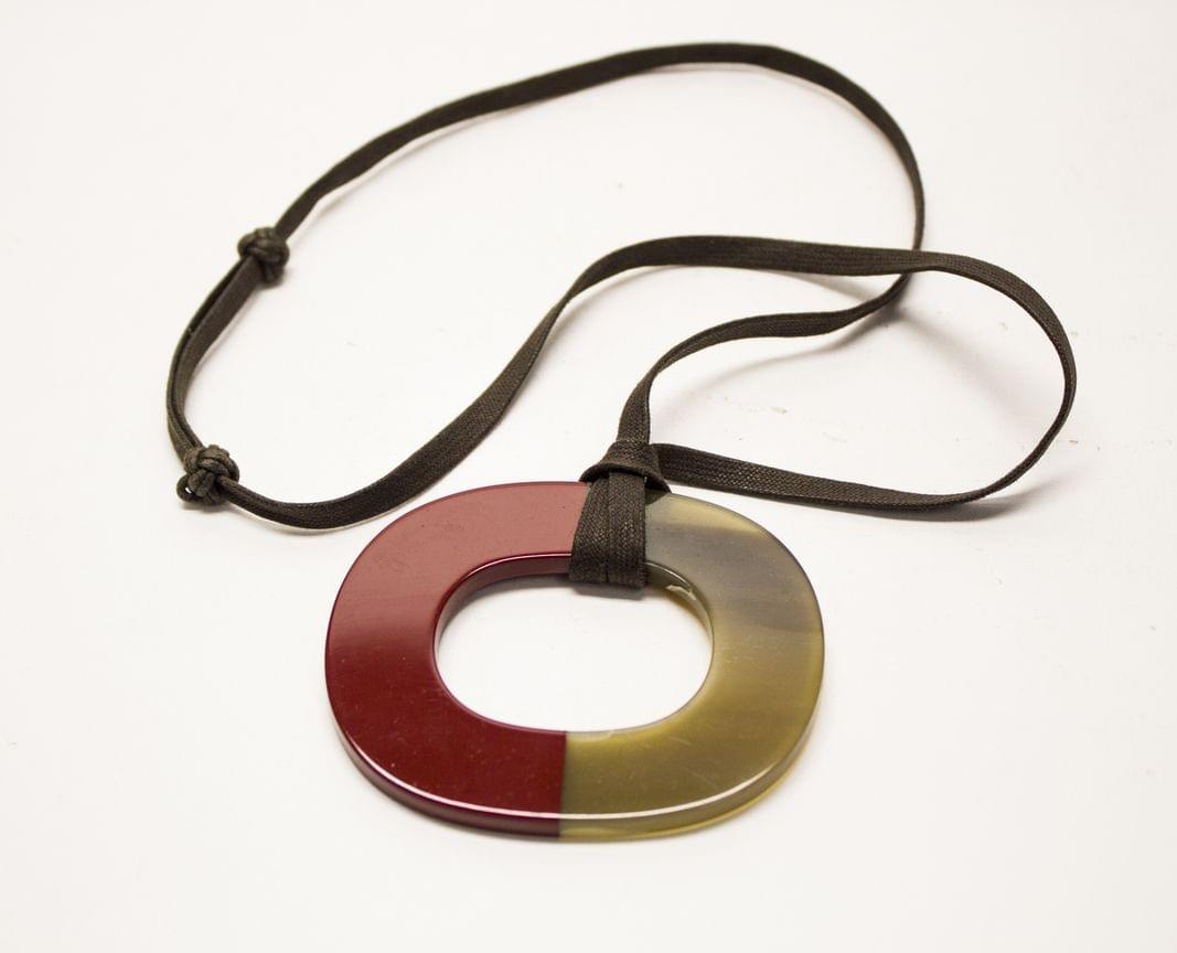 3087. Hermès, collier de forme ovoïde retenu par un cordon ajustable