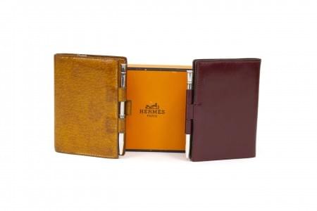 Cuir lisse bordeau et cuir camel, 10x7 cm