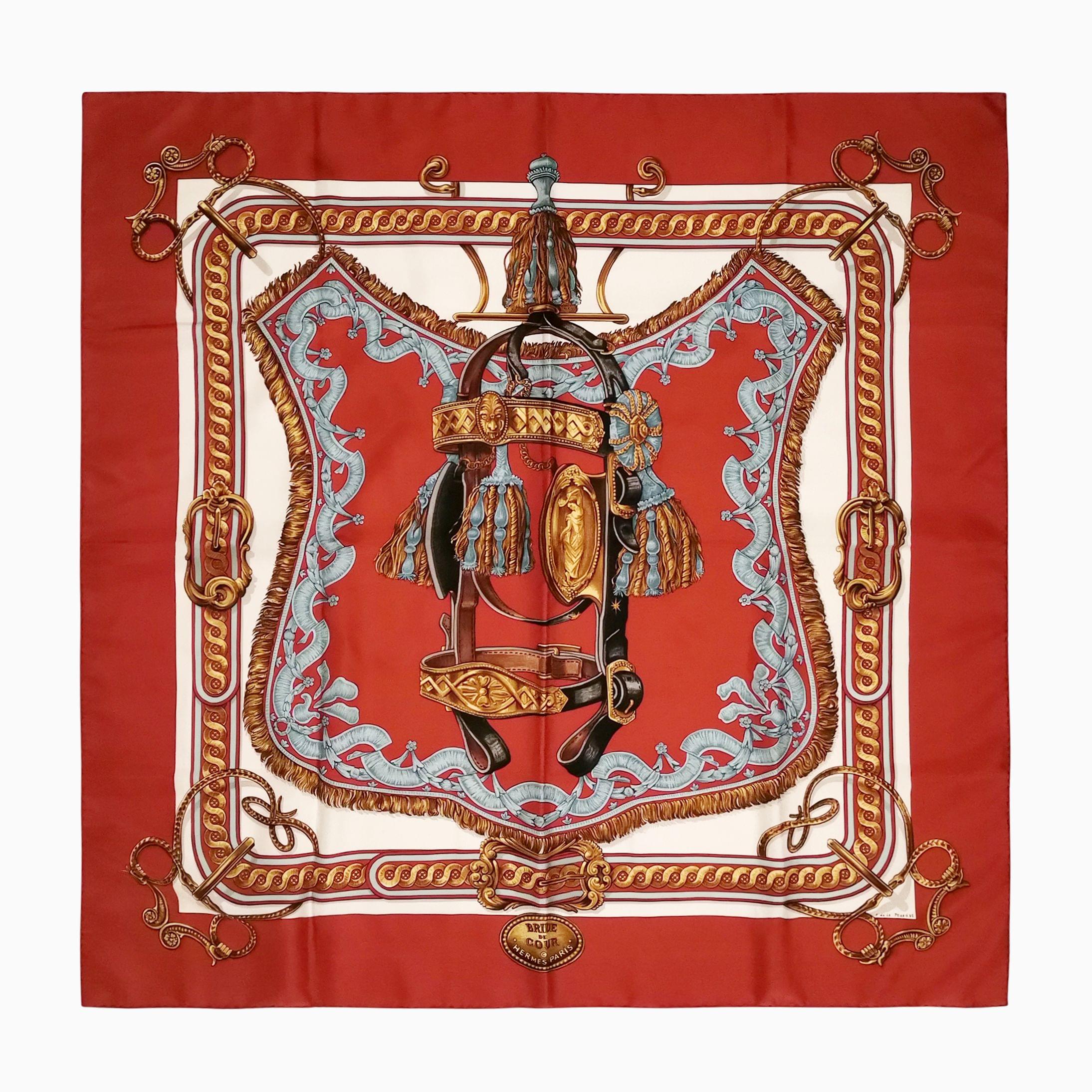A décor de bride sur fond bordeaux et blanc, soie, 88x88 cm
