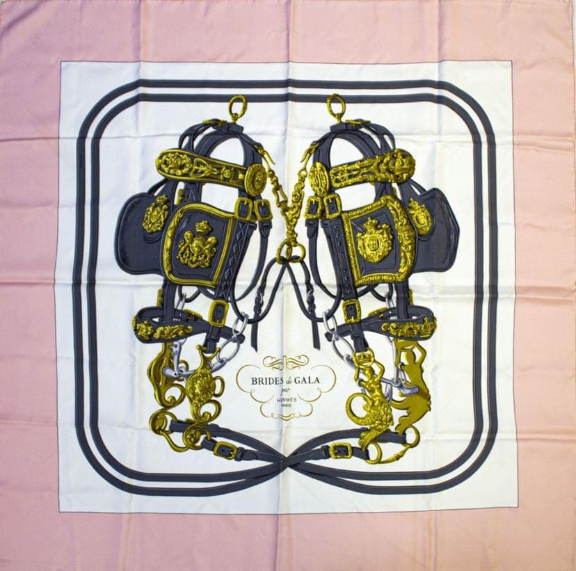 3033. Hermès, foulard "Brides de Gala" à fond rose et blanc