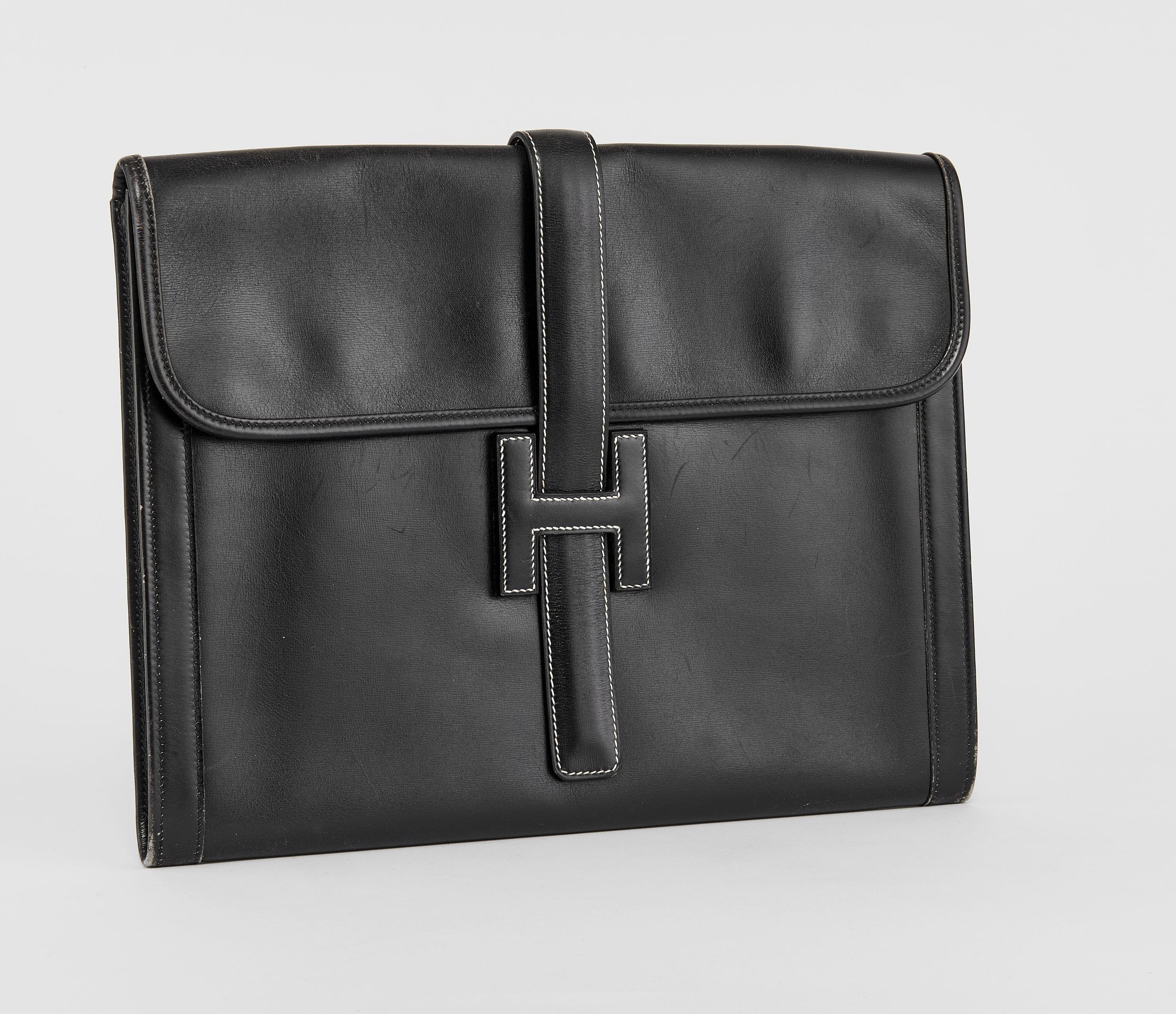 Cuir Epi noir, garniture en métal doré, monogrammée M.P, 28x38 c...