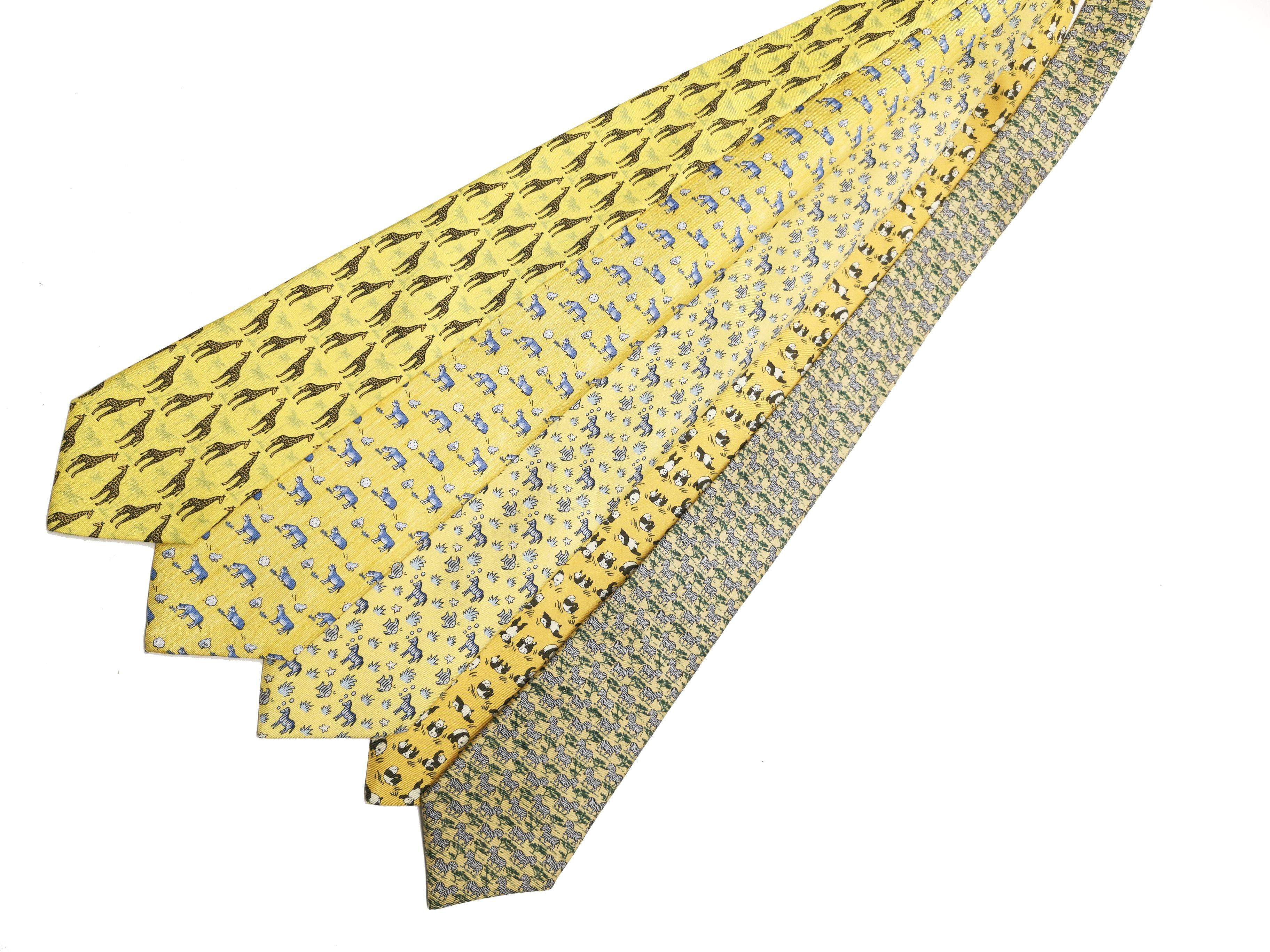 A motif de zèbres, pandas, poissons, girafes, grenouilles et bœufs, soie, L 141 à 154 cm. Provenance: collection Pernet-Villaverde