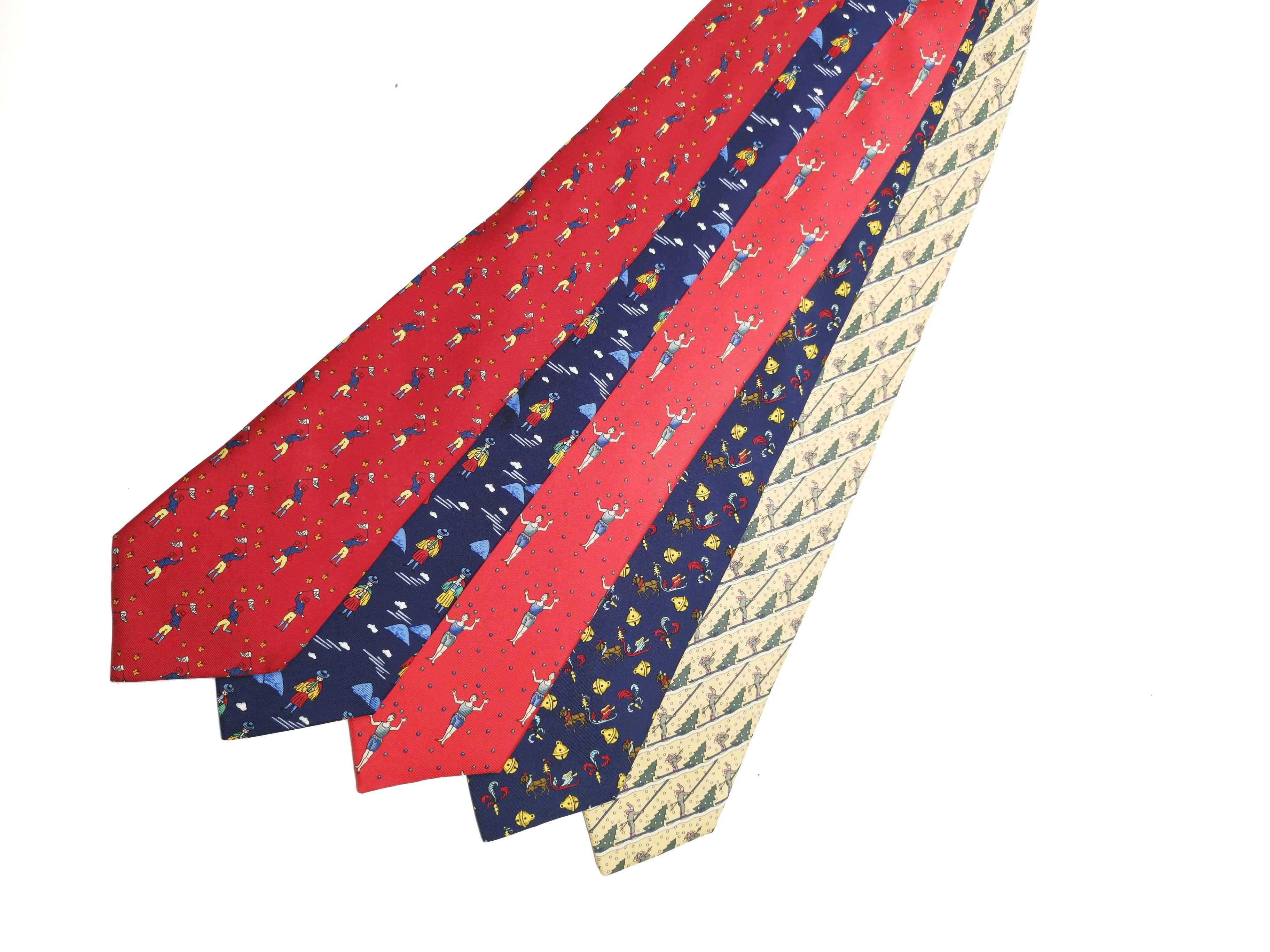 A motif de skieurs, jongleurs, personnages et traîneaux, soie, L 140 à 151 cm. Provenance: collection Pernet-Villaverde
