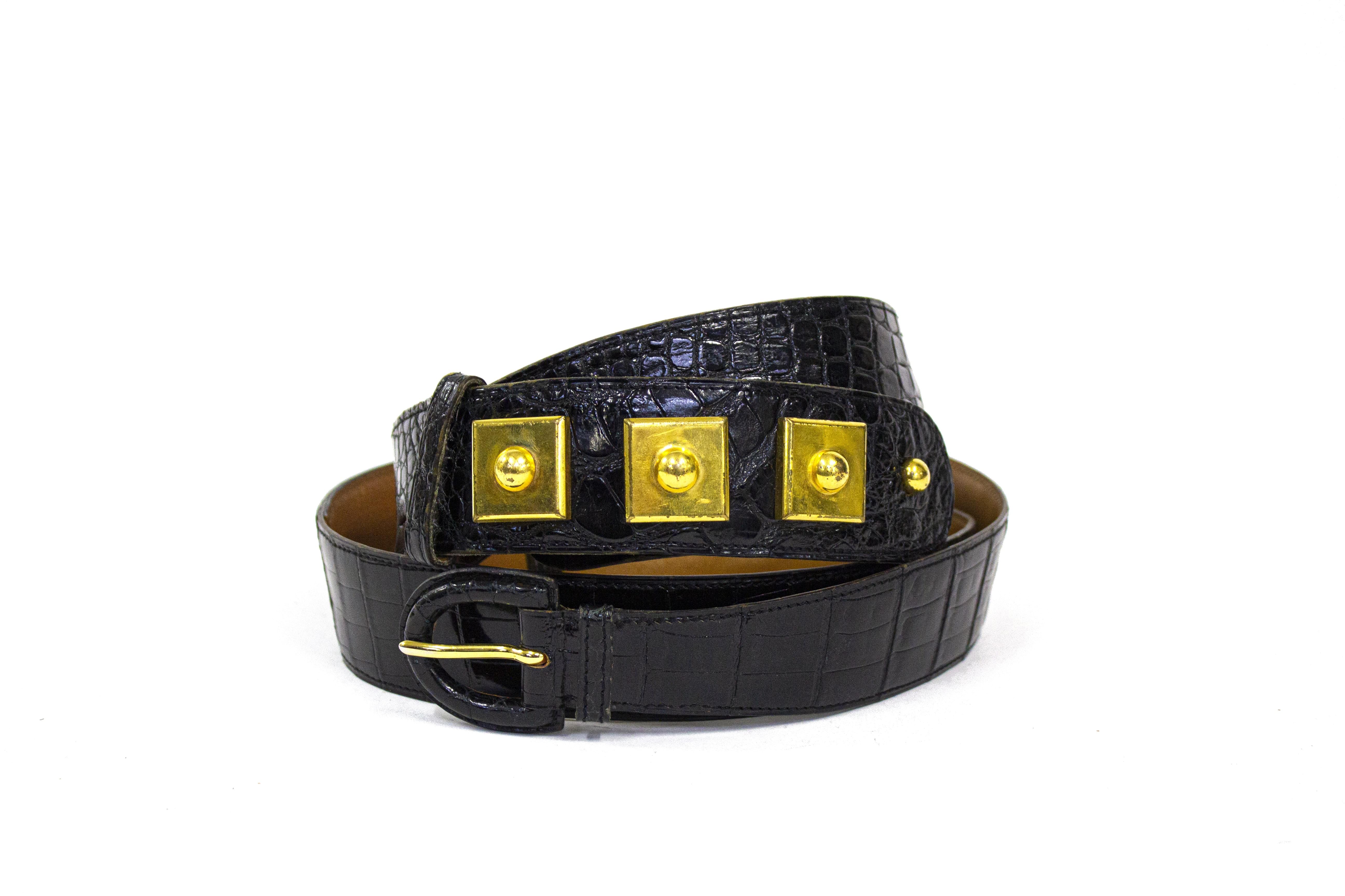 Cuir noir et métal doré, intérieur en cuir marron, L 74 à 82 cm et 82 à 93 cm