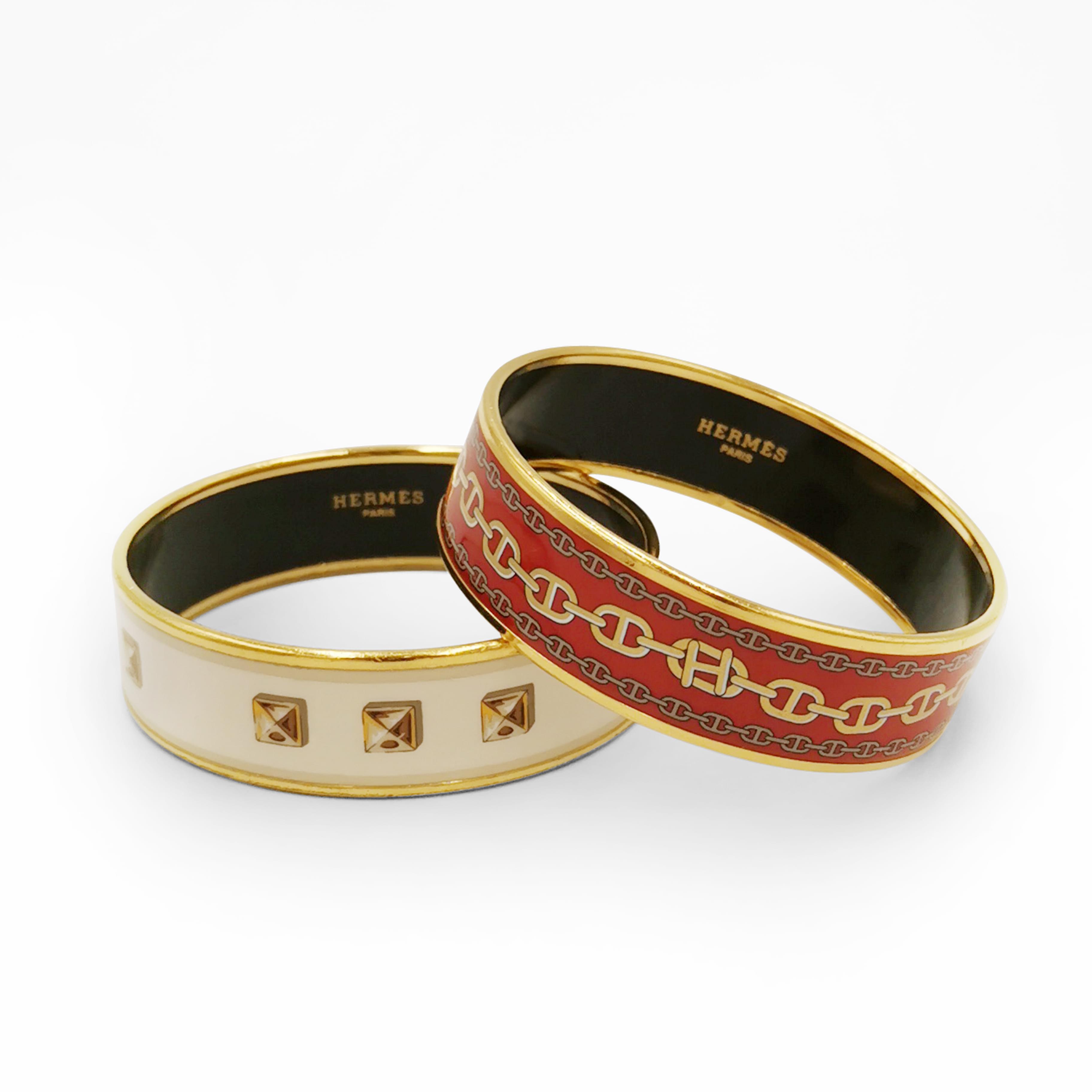 3097. Hermès, made in Austria, lot de deux bracelets manchette émaillés