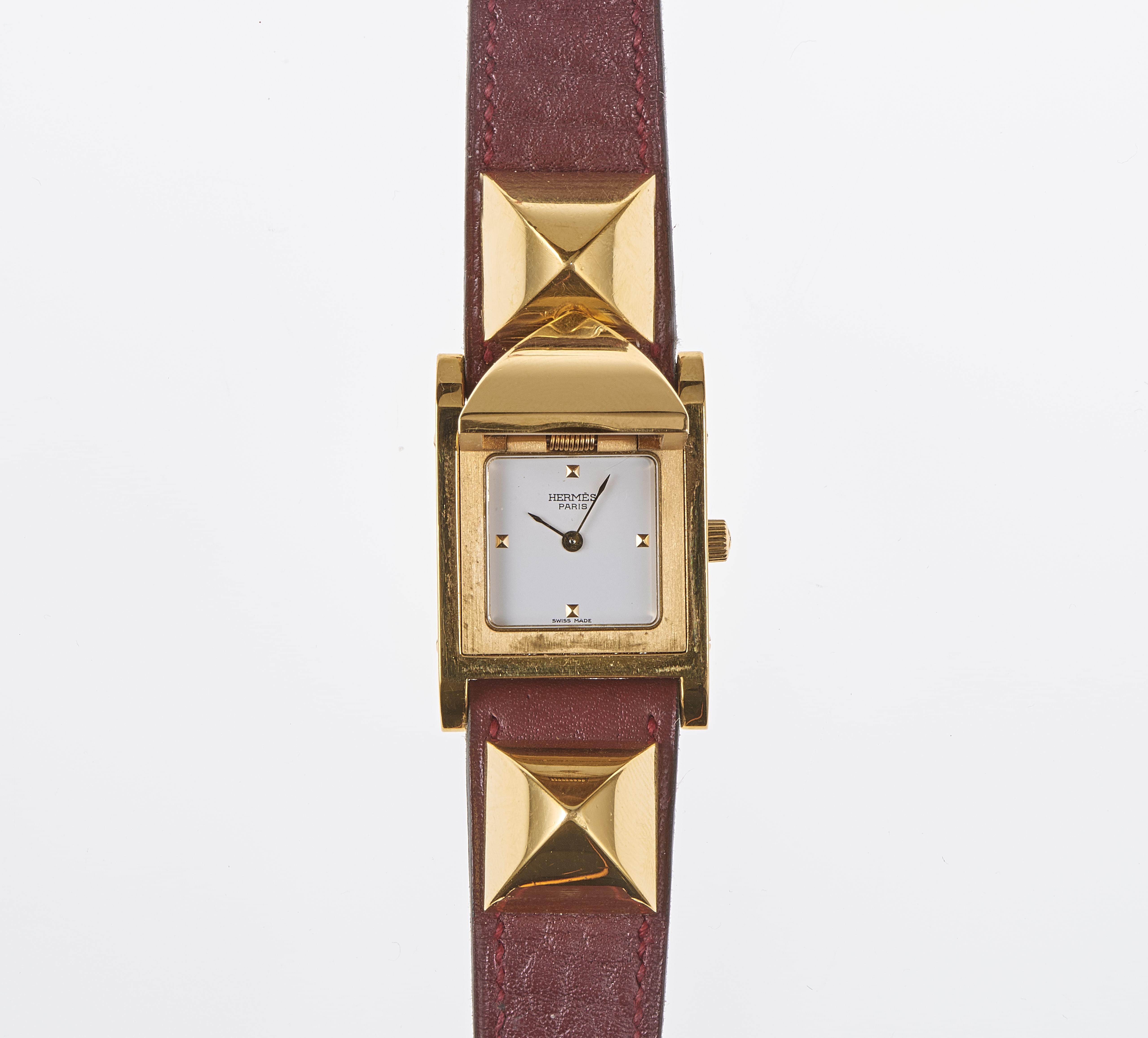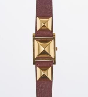 Cadran crème, aiguilles et index à points dorés, acier et métal doré, 32x23 mm