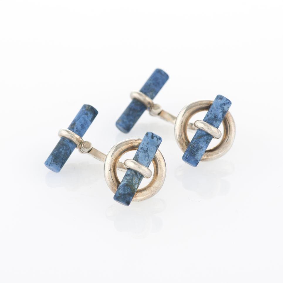 30. Hermès, paire de boutons de manchette sertis de cabochons de cor...