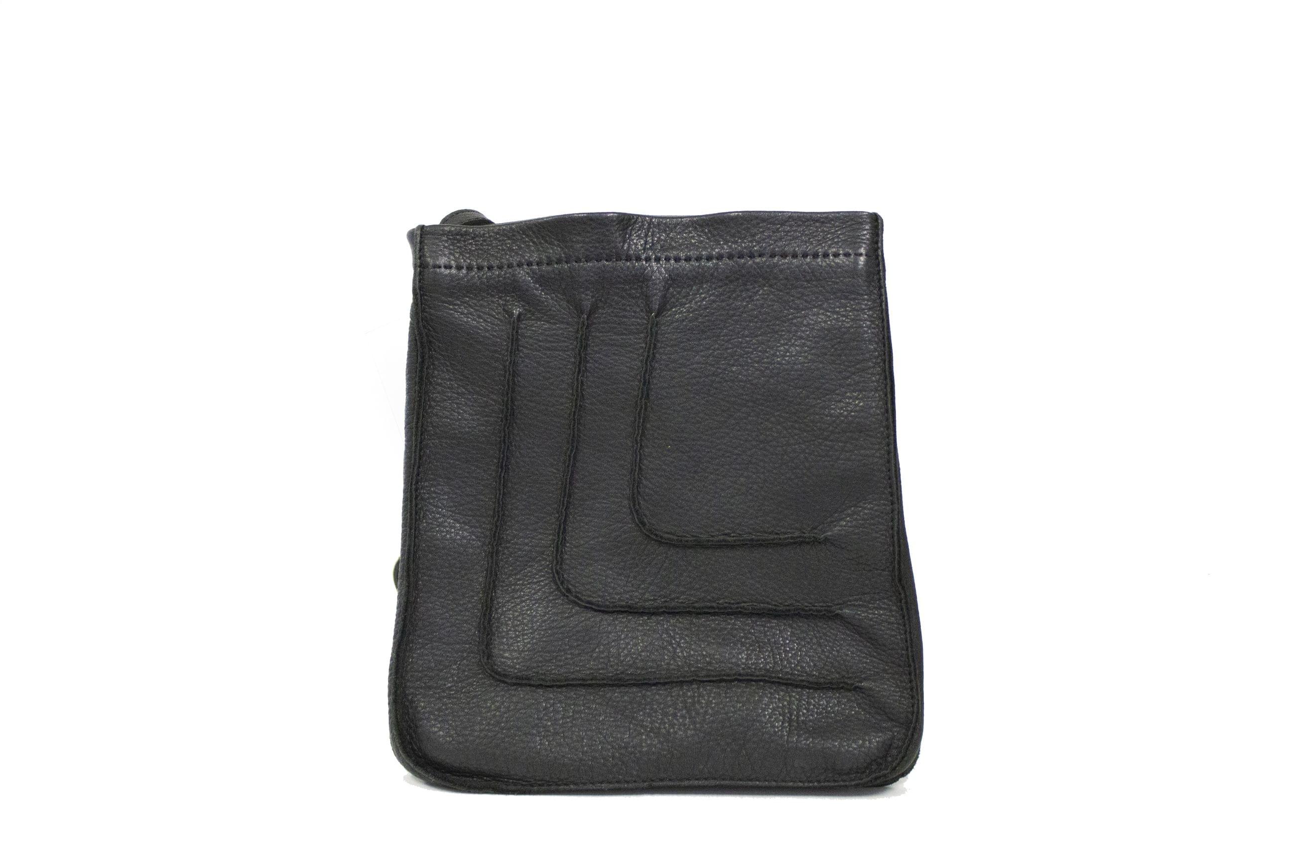 Cuir lisse noir, fermeture à languette, intérieur en toile, 20x2...