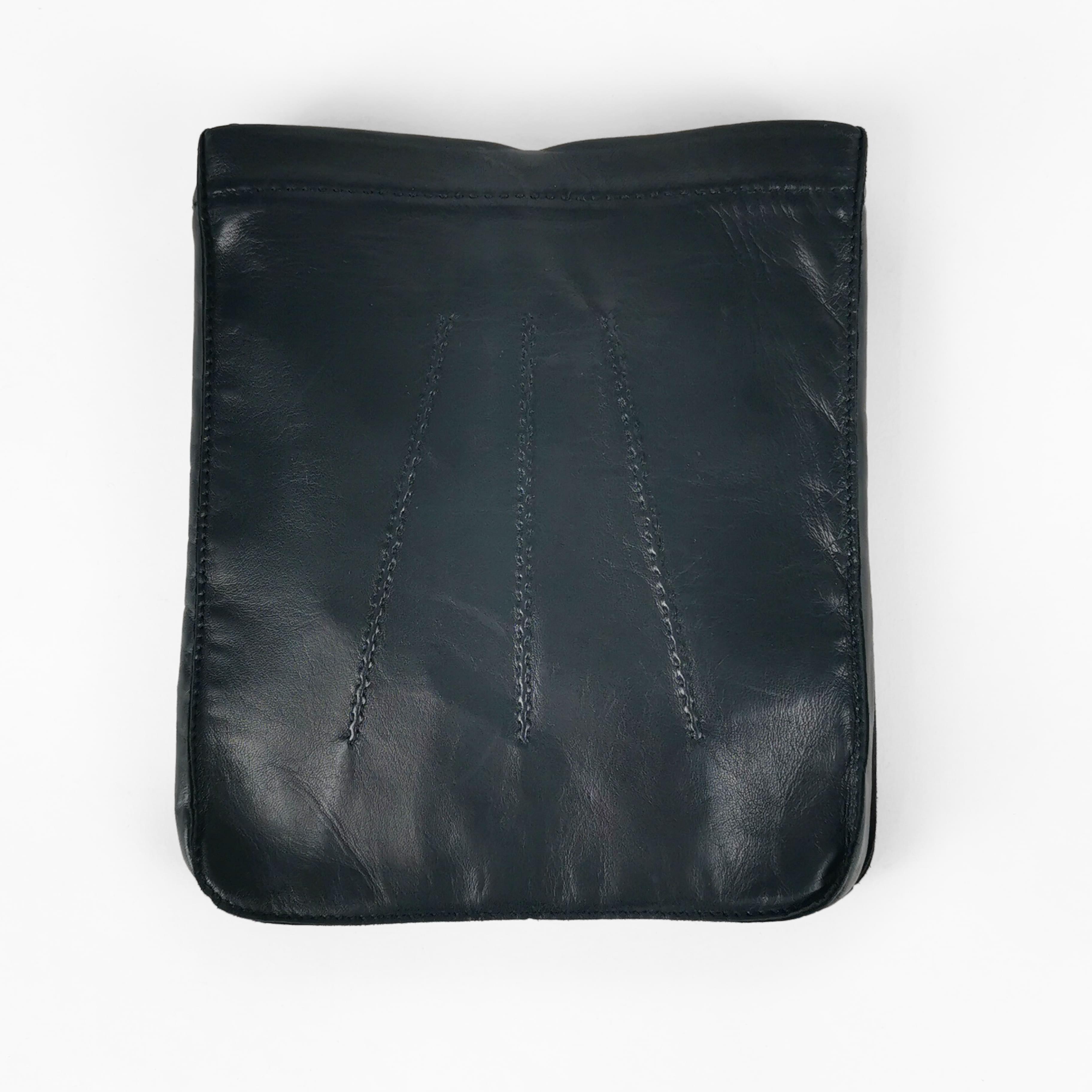 Cuir noir et surpiqûres, fermeture à pression, bandoulière, 22x18 cm