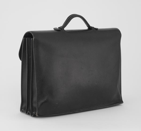 Cuir de veau Togo noir, intérieur à quatre soufflets, fermoir doré palladié, env. 30.5x40x10 cm