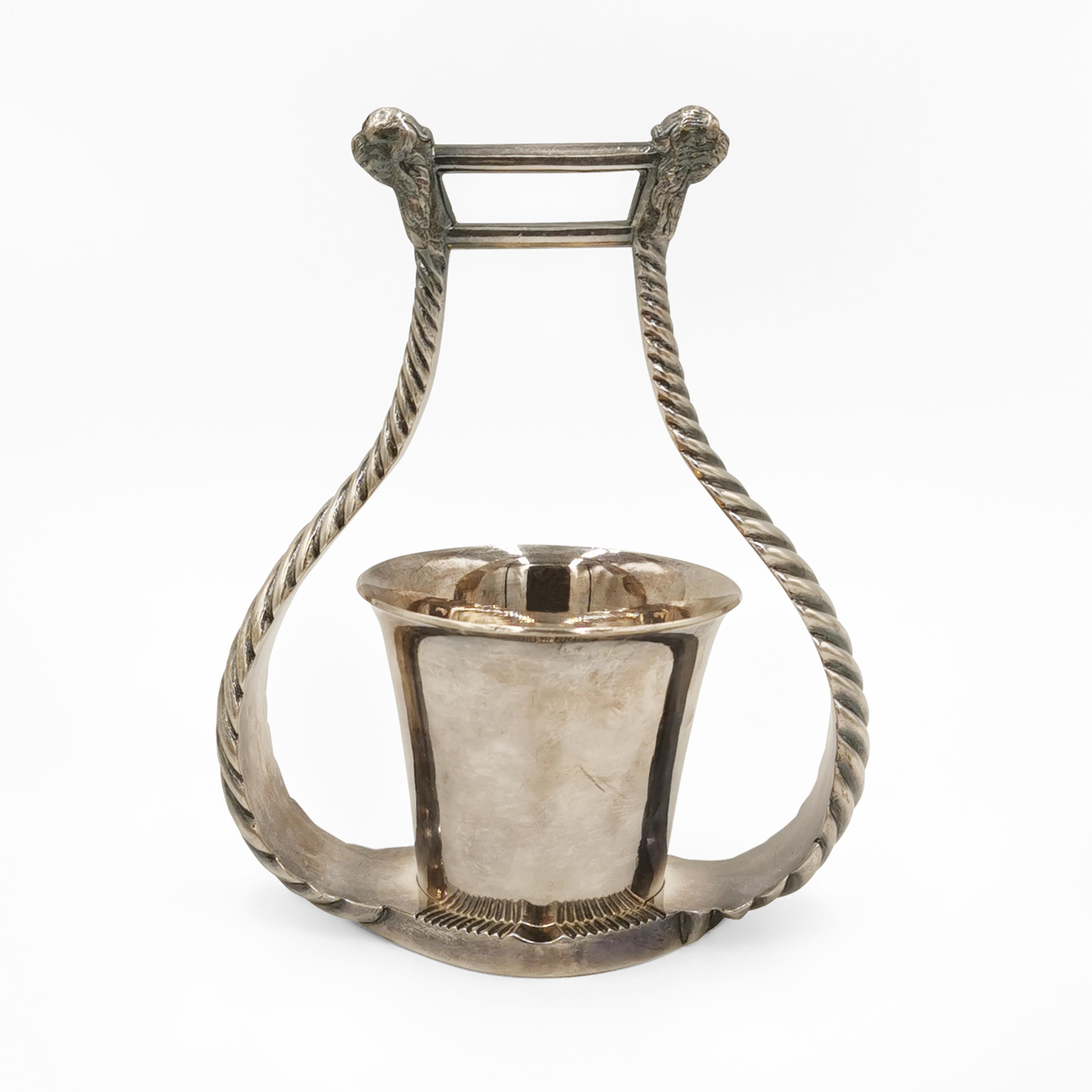 Métal argenté, figurant deux chimères à chaque extrêmité, timbale, H 15 cm