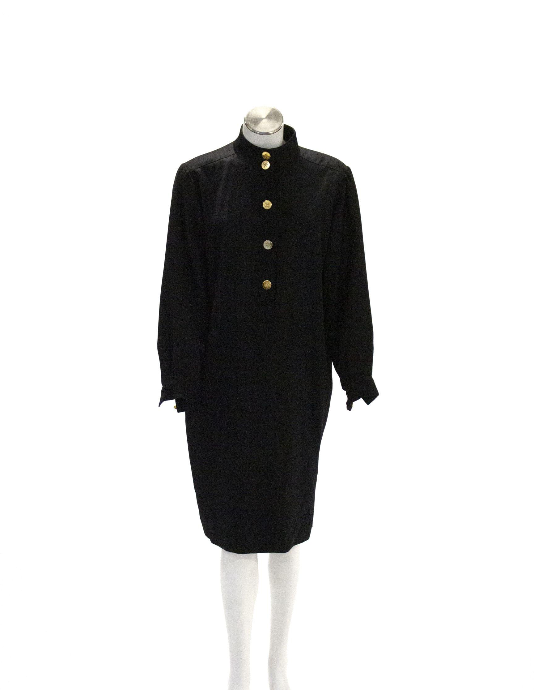 Tissu noir doublé de soie noire, manches longues, boutons dorés