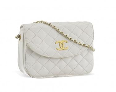 Cuir matelassé blanc, bandoulière en chaîne dorée et cuir blanc,...