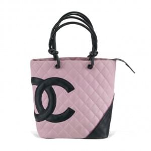 Cuir matelassé rose et noir, double anse, fermeture Eclair, 24x2...