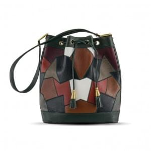 Cuir vert grainé rehaussé d'un patchwork blanc, orange, bordeaux...