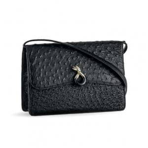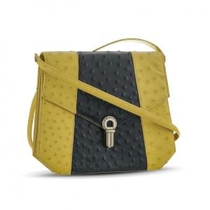 Autruche noir et jaune, bandoulière, fermoir en laiton doré et a...