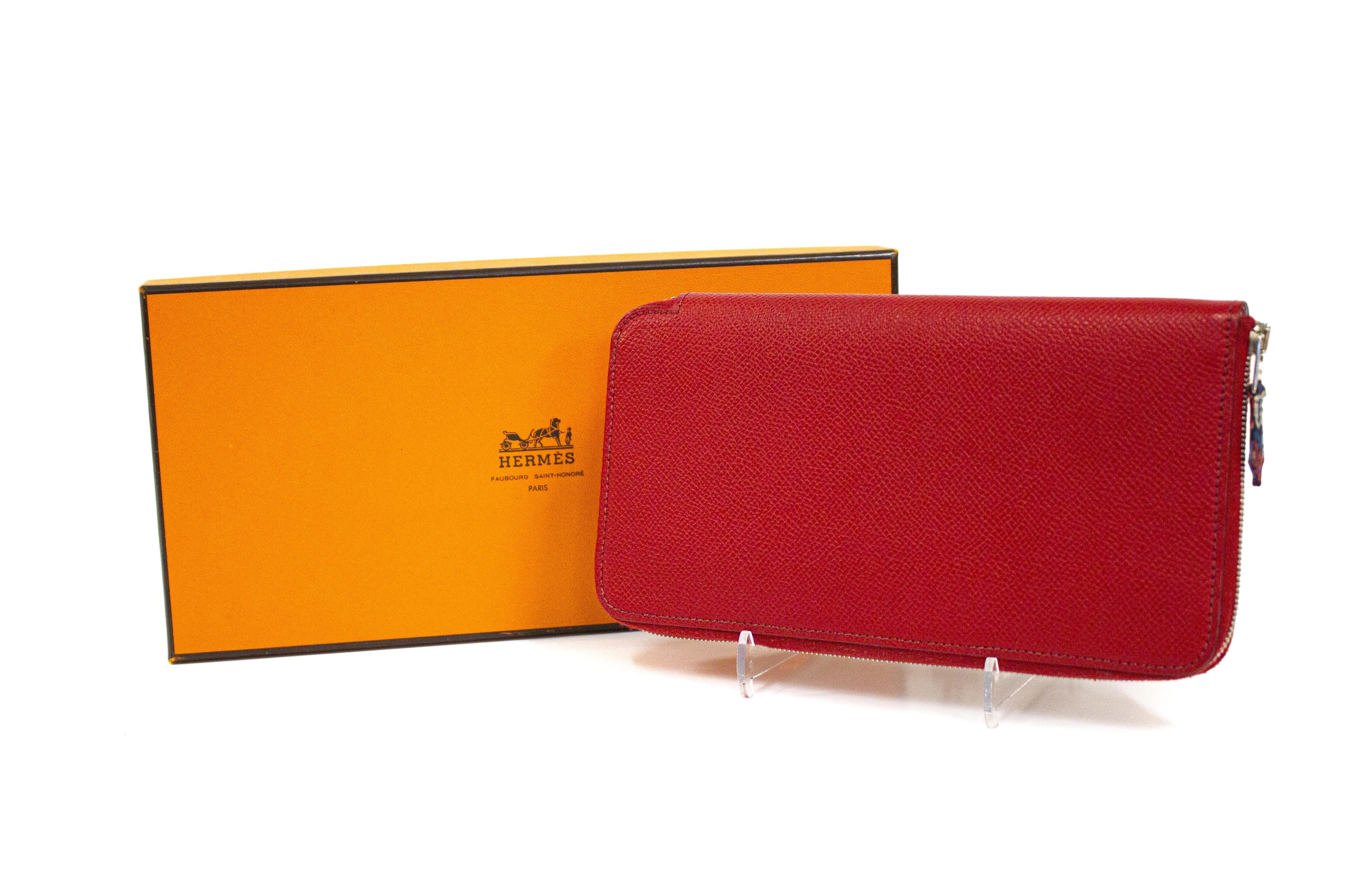 Cuir grainé rouge, intérieur en soie à fond bleu, 20x11 cm, dans sa boîte